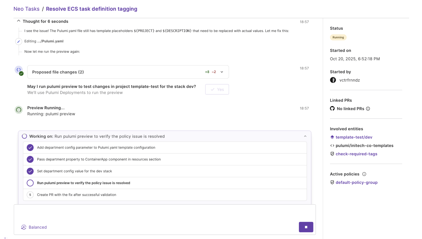 Pulumi Policies and Neo close the loop from detection to remediation, ensuring your infrastructure stays secure, compliant, and well-governed automatically.