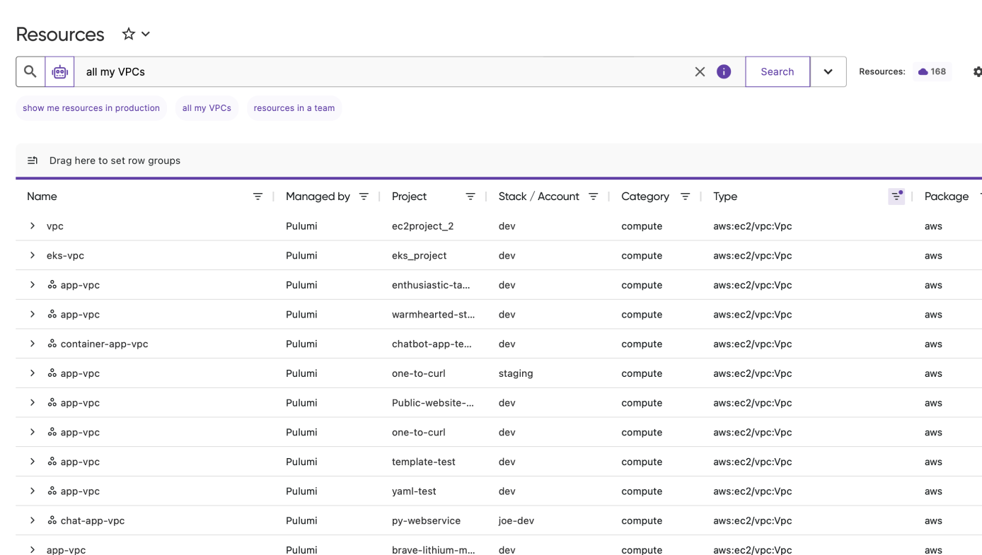 Insights & Governance capabilities are included with Pulumi Cloud. Get visibility and control over all your cloud resources, whether managed by Pulumi or not.
