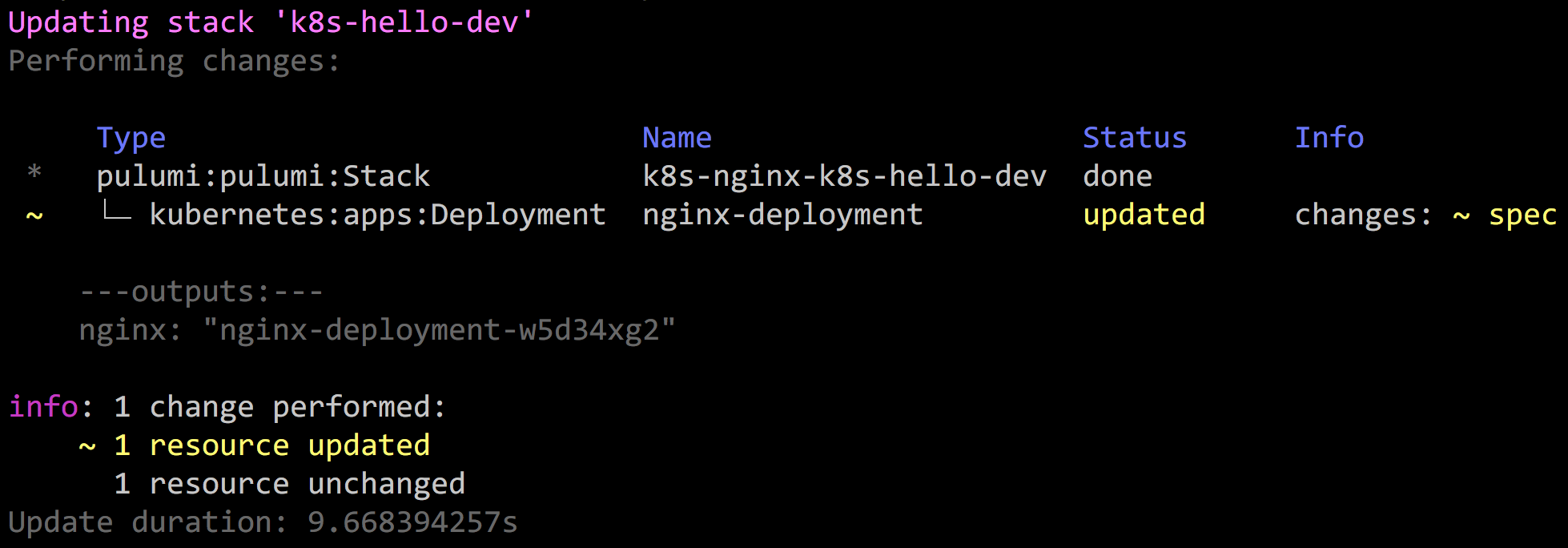 If we run this with a pulumi up, the deployment will proceed as usual,